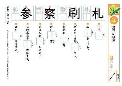 • 書き取り問題で、読み方や使い方を覚えましょう。