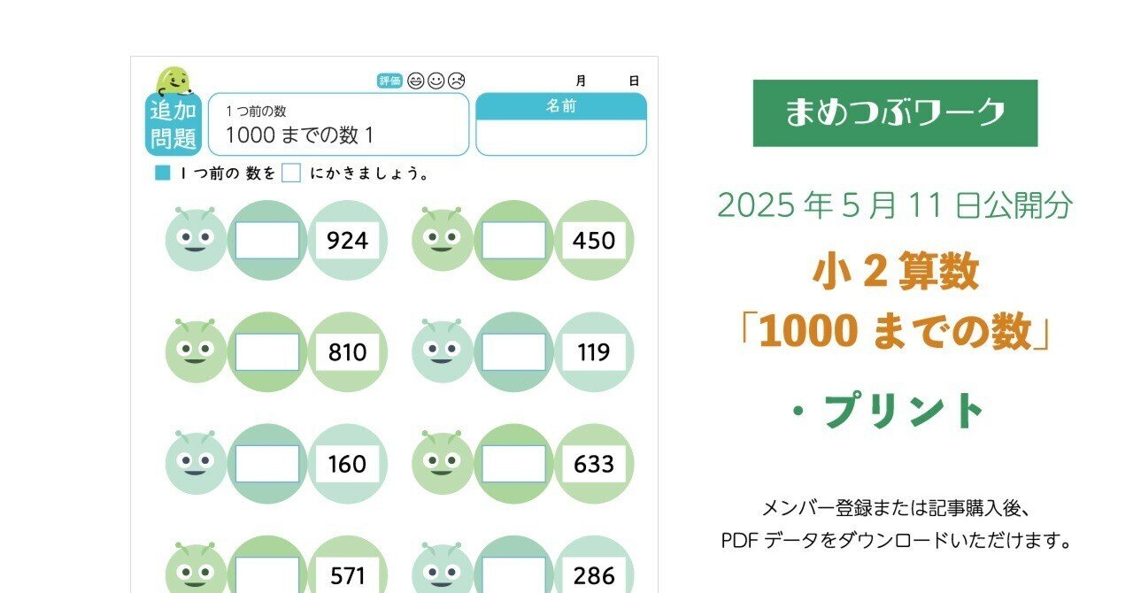 小2・算数|1000までの数【1つ前の数】(全2枚) | まめつぶワーク