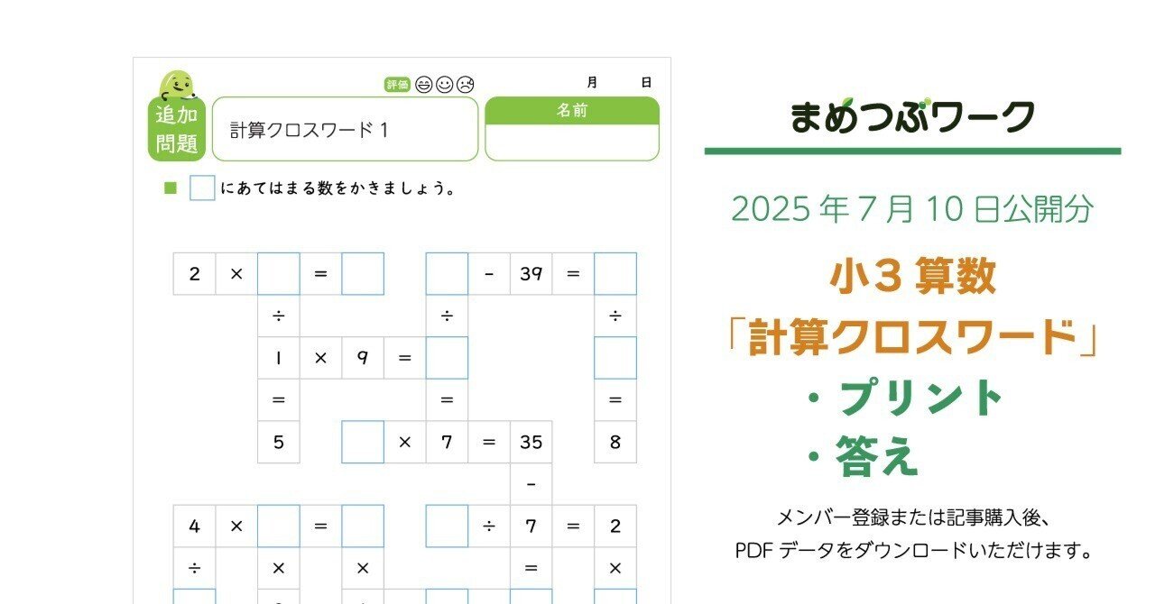 小学3年生から取り組める、四則計算のクロスワードパズルです。