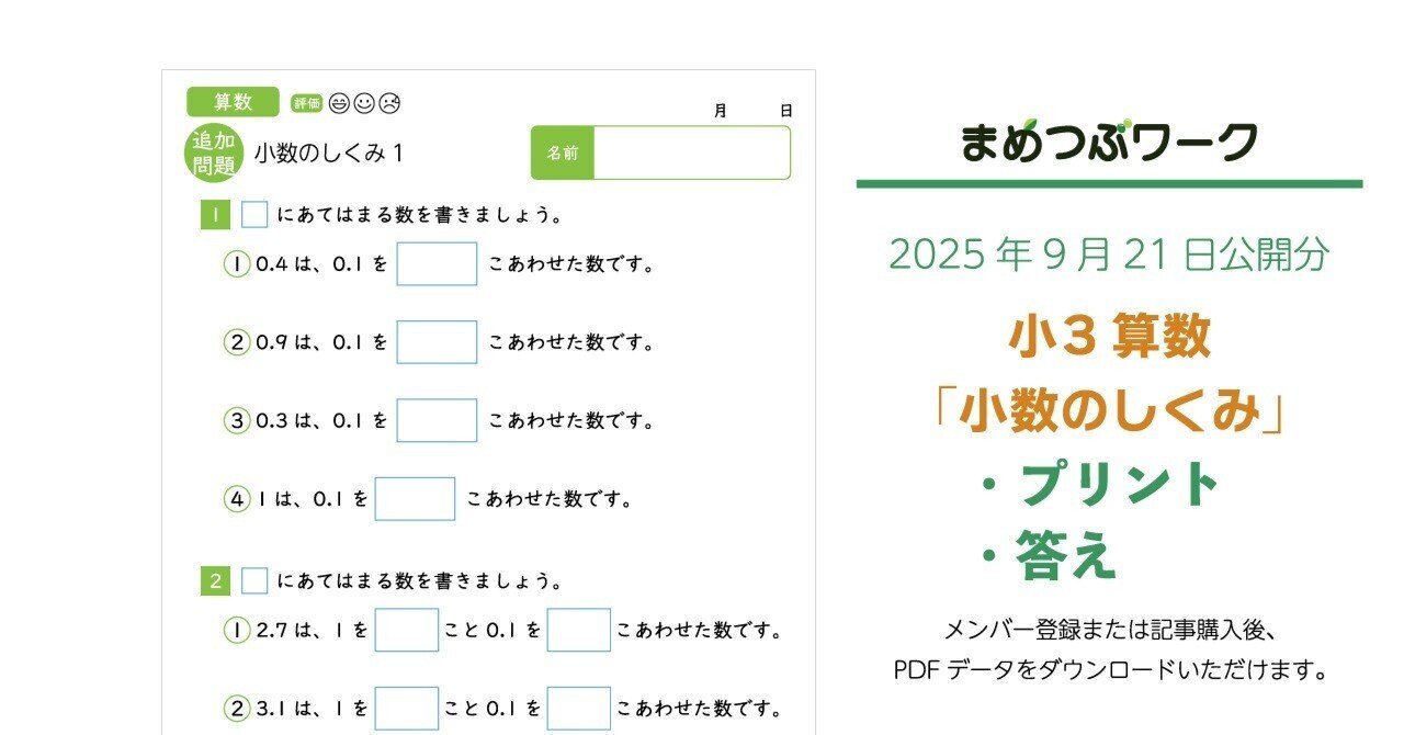 小3算数「小数のしくみ」のプリントです。
