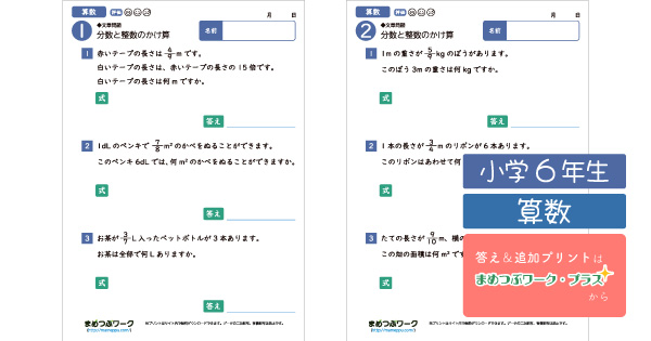 分数と整数のかけ算の文章問題|小6算数プリント | まめつぶワーク