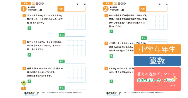 小4算数|小数の足し算と引き算の筆算(全4枚)