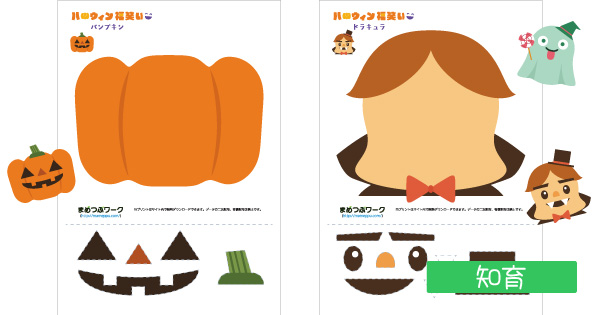 パンプキン、おばけ、バンパイアのいろいろな表情をつくって遊んでくださいね。