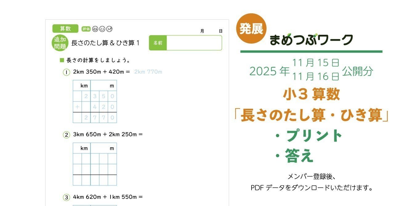 小2・算数|長いものの長さのたし算の筆算(全3枚)