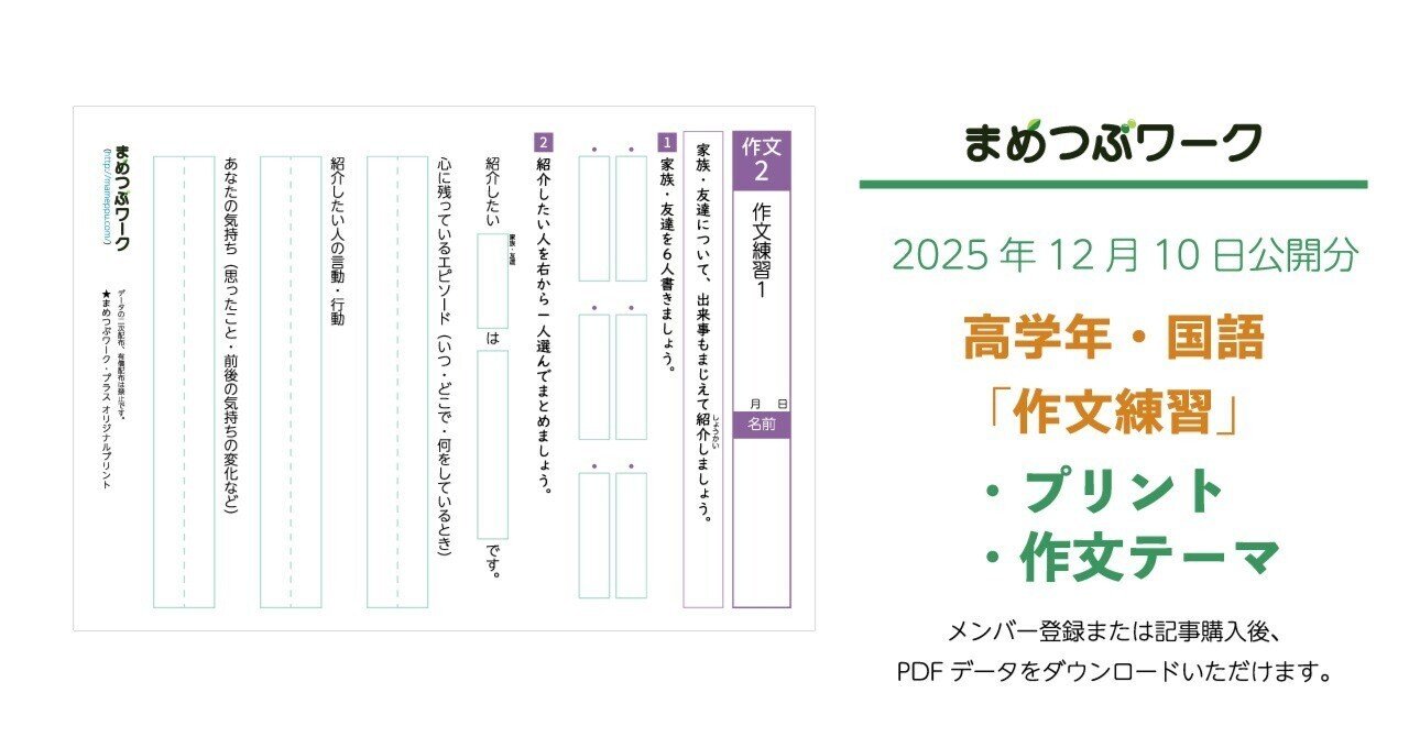 追加プリント9枚&作文テーマ40選はまめつぶワーク・プラス(note)から▼