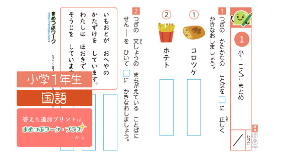 - 小1で習った漢字を覚えているか、読み取り・書き取り問題に取り組んでチェックしましょう。