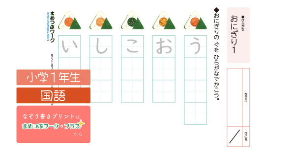 おにぎりの具の名前で、ひらがなの書き取り練習をしましょう。