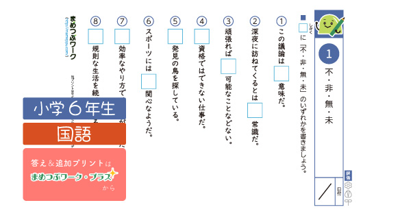 「不・非・無・未」のつく言葉を学べるプリントです。