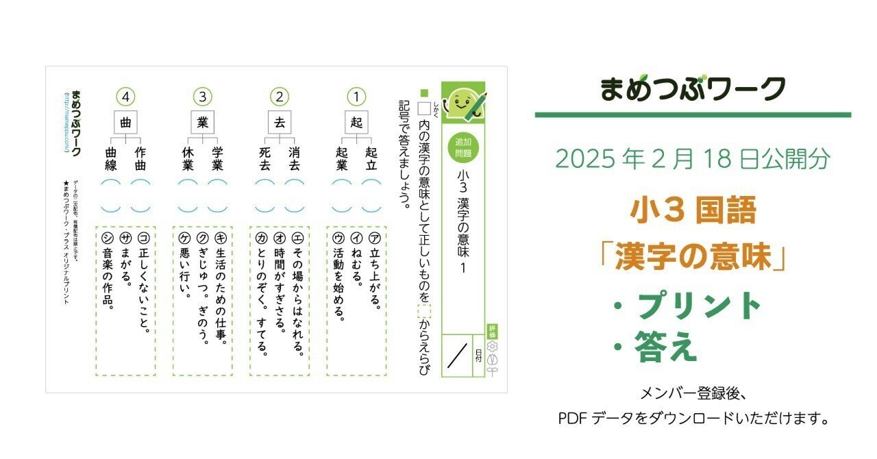 漢字の意味|小3国語プリント | まめつぶワーク