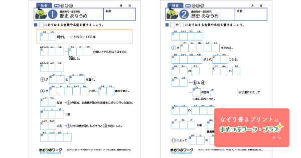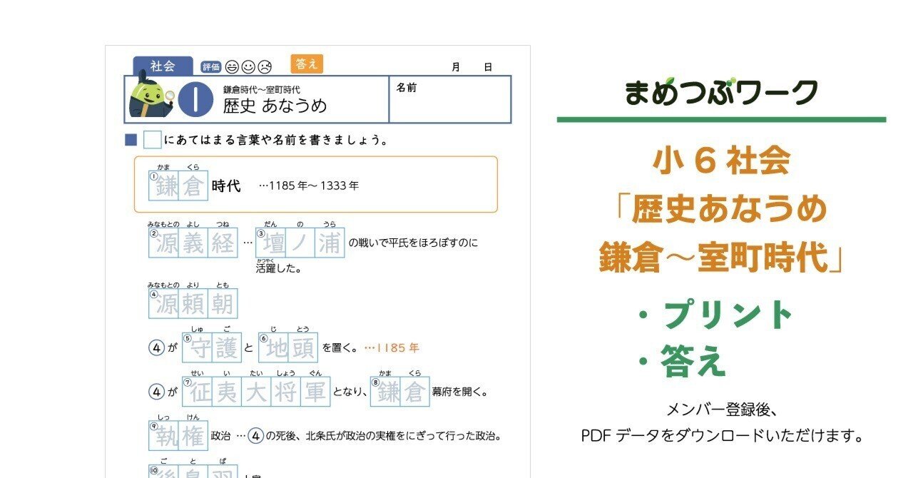 鎌倉時代から室町時代までの歴史用語を学べるプリントです。