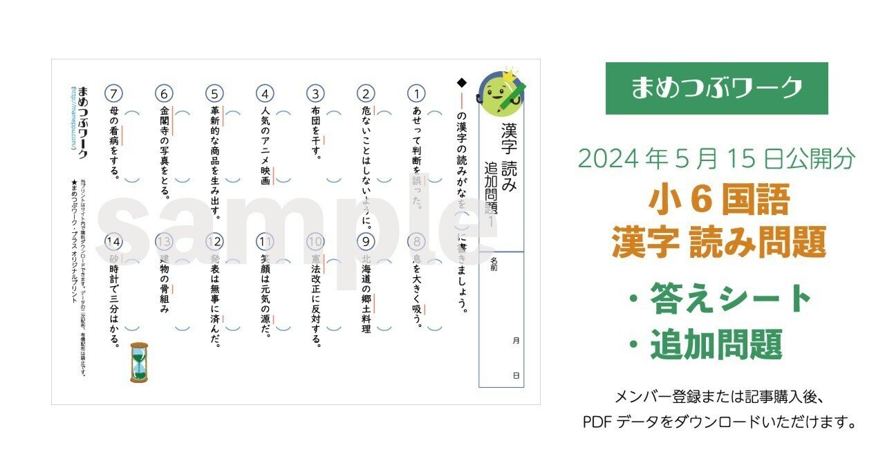 小学校6年生|漢字の読み取り問題|国語プリント | まめつぶワーク
