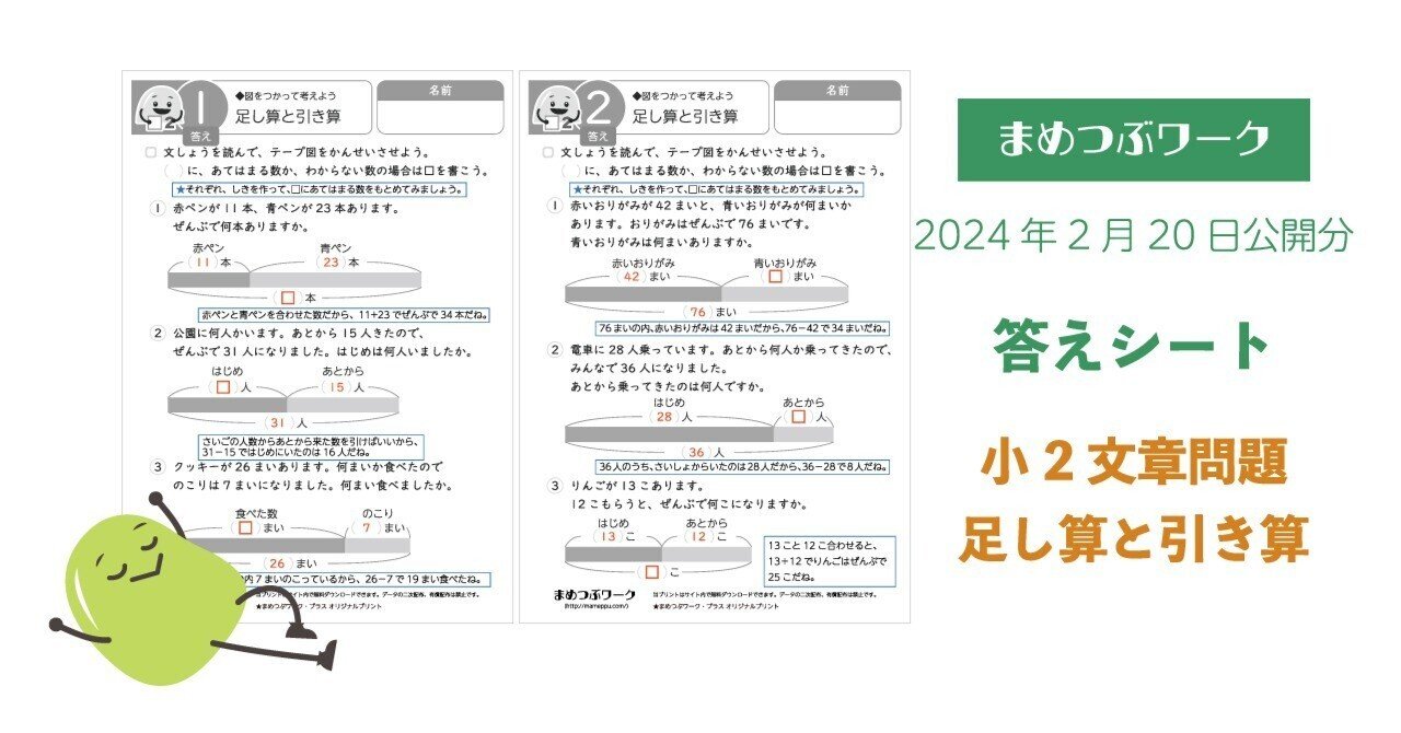 小2・算数「足し算と引き算 図を使って考えよう」の文章問題プリントです。