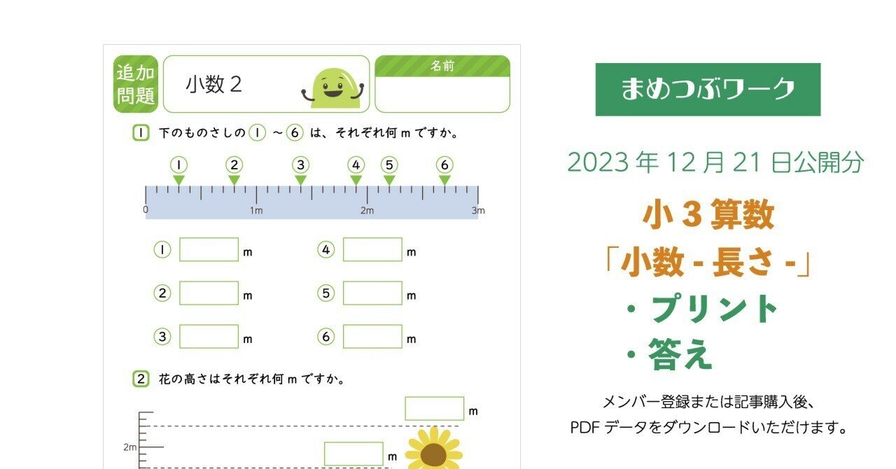 - 「小数・長さ1」はcm(センチメートル)、「小数・長さ2」はm(メートル)の問題です。