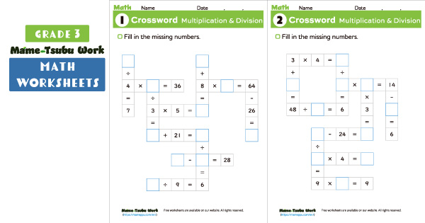 Have fun practicing all four operations – addition, subtraction, multiplication, and division – with these math crossword puzzles!