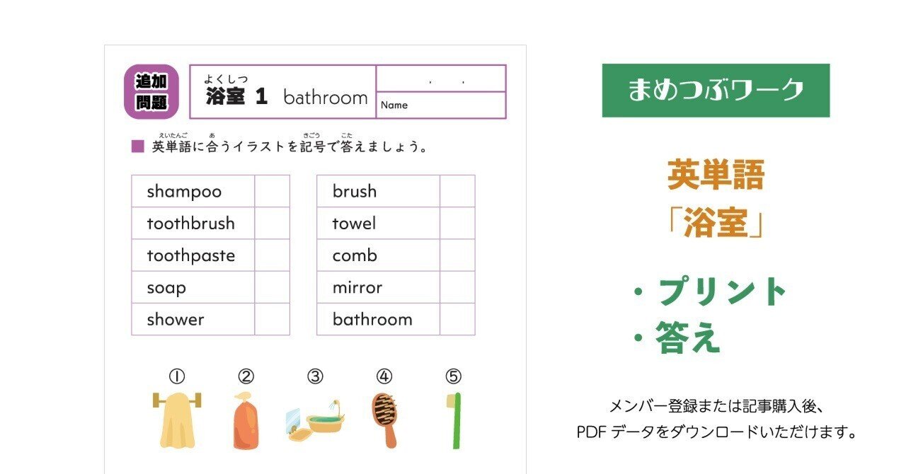 浴室・お風呂場にあるものや使うものの英単語練習プリントです。