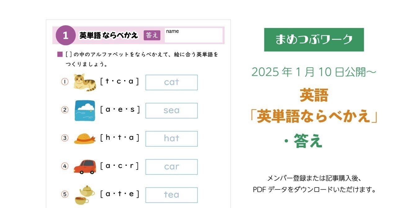 英単語スペル並べ替え【4文字】無料ダウンロード | まめつぶワーク