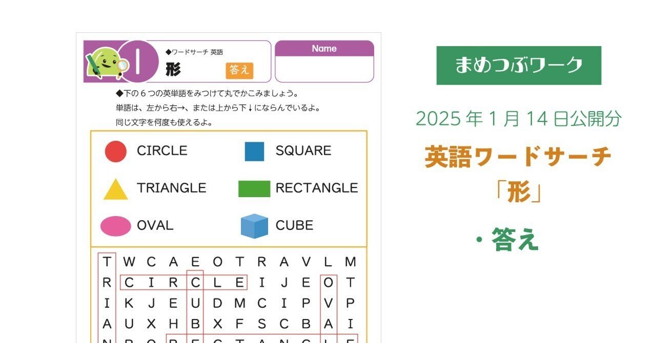 形の英単語ワードサーチ|英語プリント | まめつぶワーク