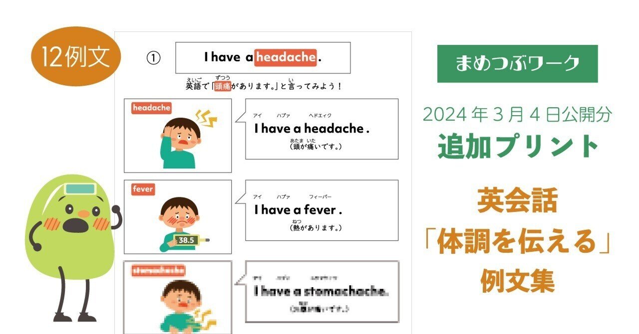 - I have a ~.を使って、自分の体調を伝えてみましょう。