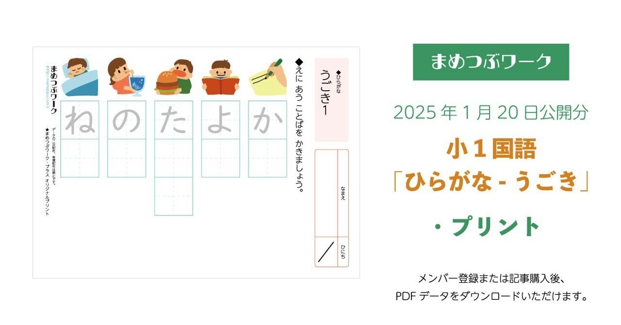 小1・国語|ひらがなの動きを表す言葉(全3枚) 2025.01.20 無料でダウンロード・印刷できる国語プリントです。 ひらがな練習プリントです。イラストを見ながら、15の動きを表す言葉をなぞって覚えましょう。 おすすめの学年幼児・小学1年生 幼児・小1|動きを表す言葉(全3枚)日常生活でよく使う、動きを表す言葉のプリントです。空欄にあてはまる動詞を、選択肢から選んで書きましょう。文は全てひらがなです。 スポンサーリンク ダウンロード うごき1 うごき3 まとめてダウンロードうごき1-3セット うごき2 空欄プリントはまめつぶワーク・プラス(note)から▼ 空欄プリント「ひらがな|うごき」(全3枚)|まめつぶワーク・プラスまめつぶワークで2025年1月20日に公開した「ひらがな|うごき」の空欄プリントです。 なぞり書きプリントで練習した後は、空欄プリントで確認しましょう。 【内容】 プリント3枚(PDFデータ) プリントサンプル ダウンロード 小1・国語|ひらがなのいろいろな仕事(全5枚)先生や警察官など、21の職業の名前をひらがなでかいてみましょう。すべての単語にイラスト有りのプリントで、楽しくひらがなのなぞり書き練習をしましょう。 3・4才~|工作│乗り物(全3枚) 英単語ならべかえ【5文字】(全3枚)