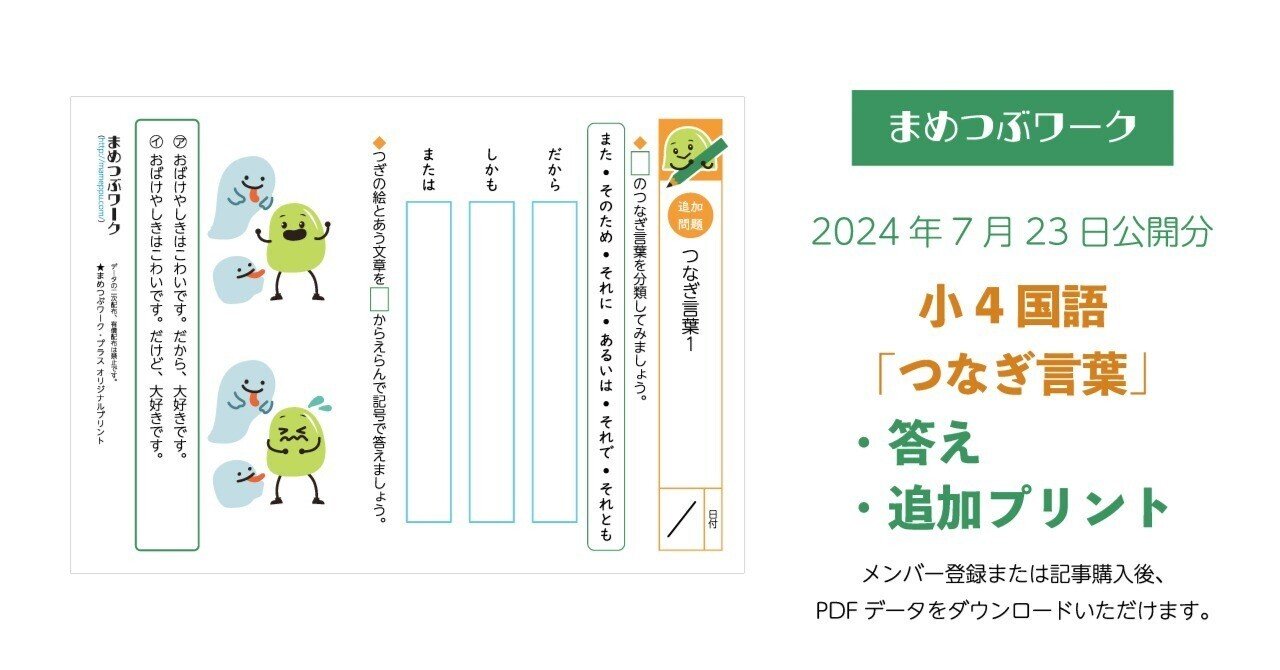 小4国語「つなぎ言葉のはたらきを知ろう」のプリントです。