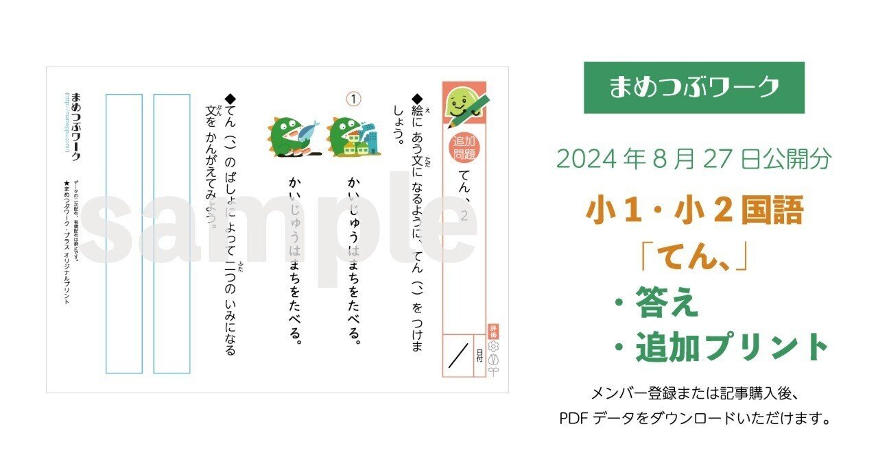 小1・小2向け、国語プリント「てん(、)」です。読点の使い方を学びましょう。