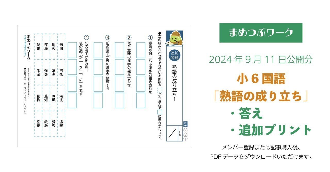 熟語の成り立ち|小6国語プリント | まめつぶワーク