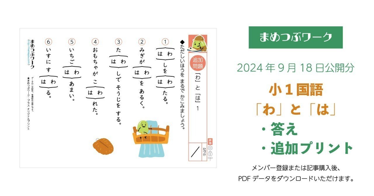 小1国語・くっつき言葉(助詞)「は」のプリントです。