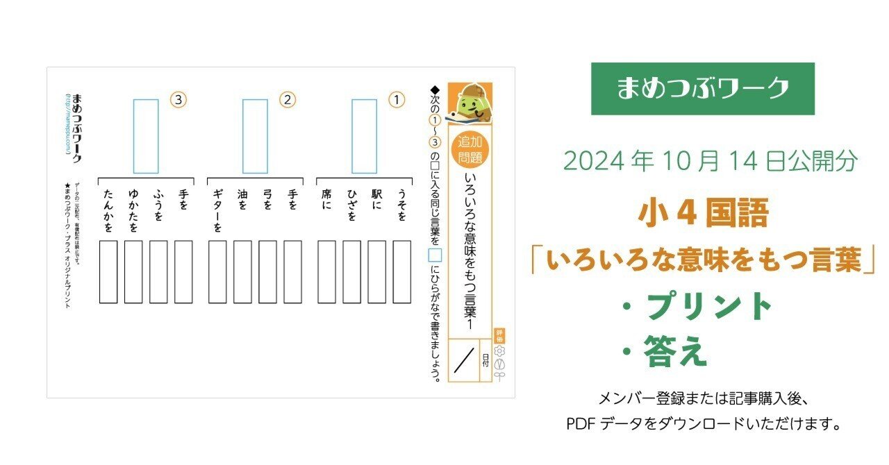 小4国語「いろいろな意味をもつ言葉」のプリントです。