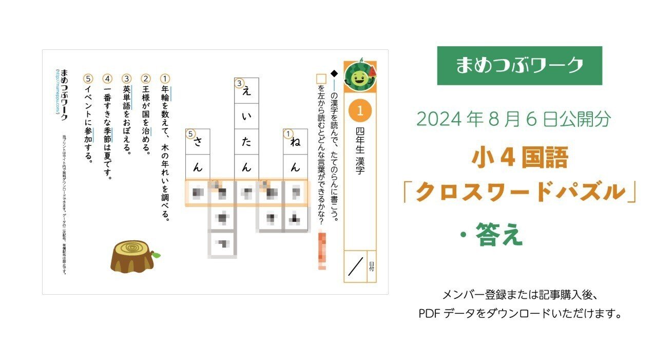 小4漢字クロスワードパズル|国語プリント | まめつぶワーク