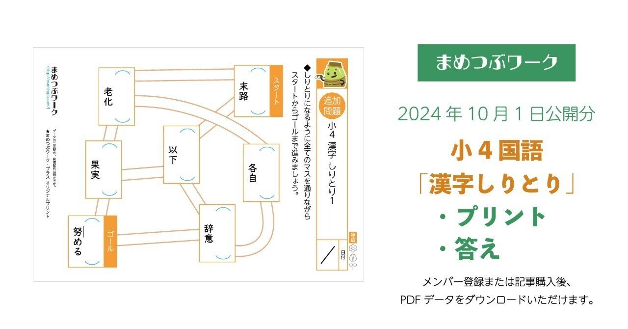 小学校4年生で習う漢字を読んで、しりとりになるように全部のマスを通りながらゴールまで進みましょう。漢字の復習に、朝学習や毎日の学習のプラスとしてご利用ください。