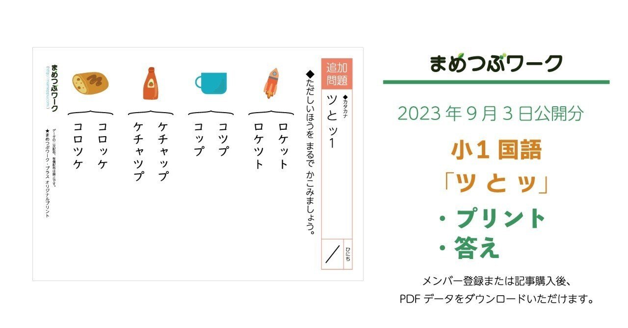 カタカナの促音の選択問題|幼児・小1国語プリント | まめつぶワーク