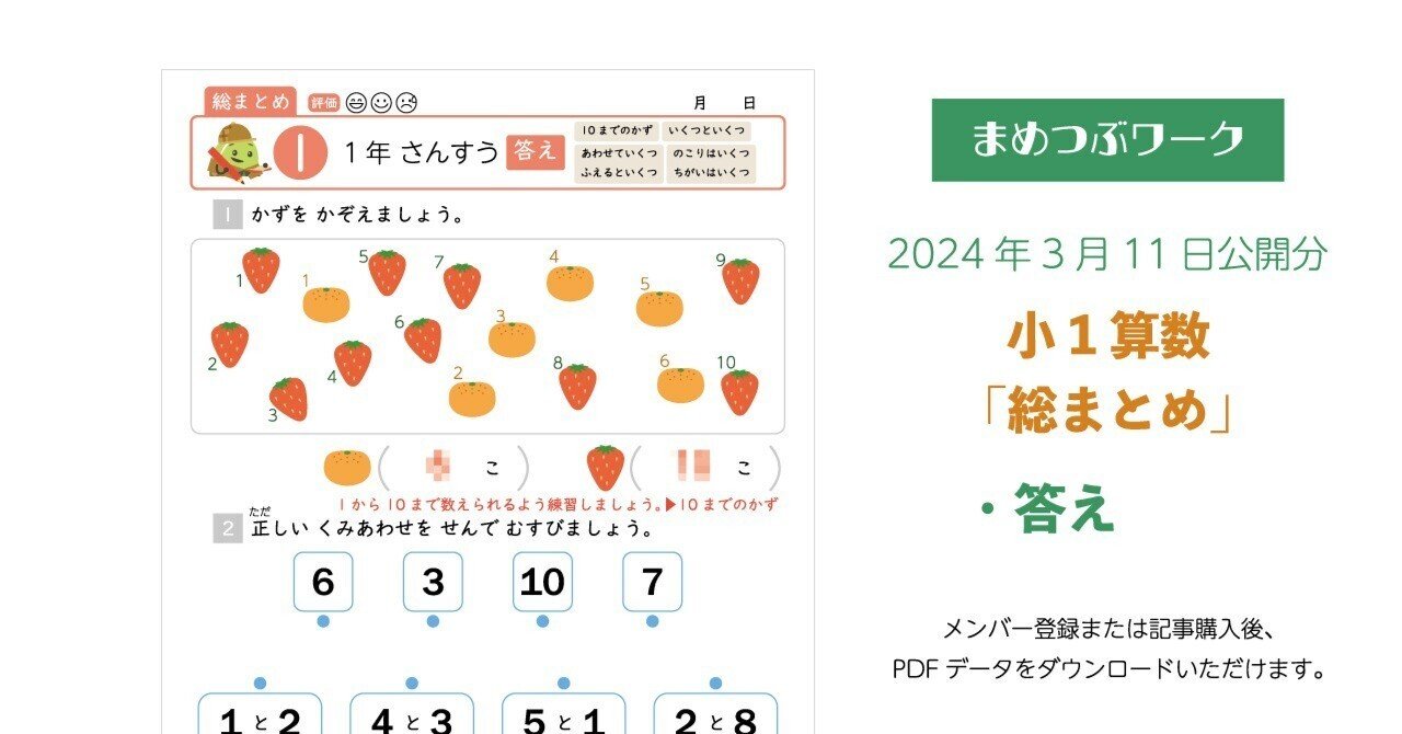 まめつぶワークでは、たくさんの1年生向け算数プリントをご用意しています。