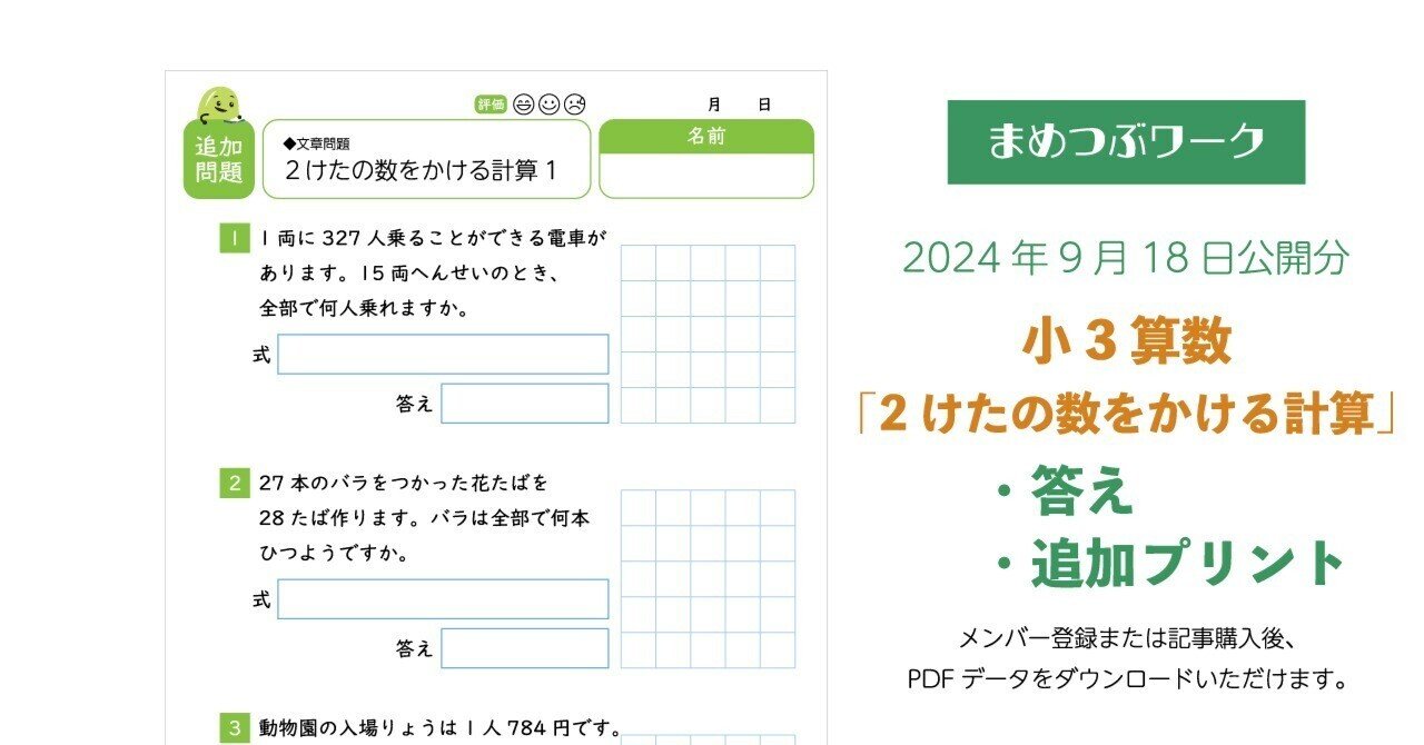 小3・算数|かけ算の筆算【文章問題】(全2枚)