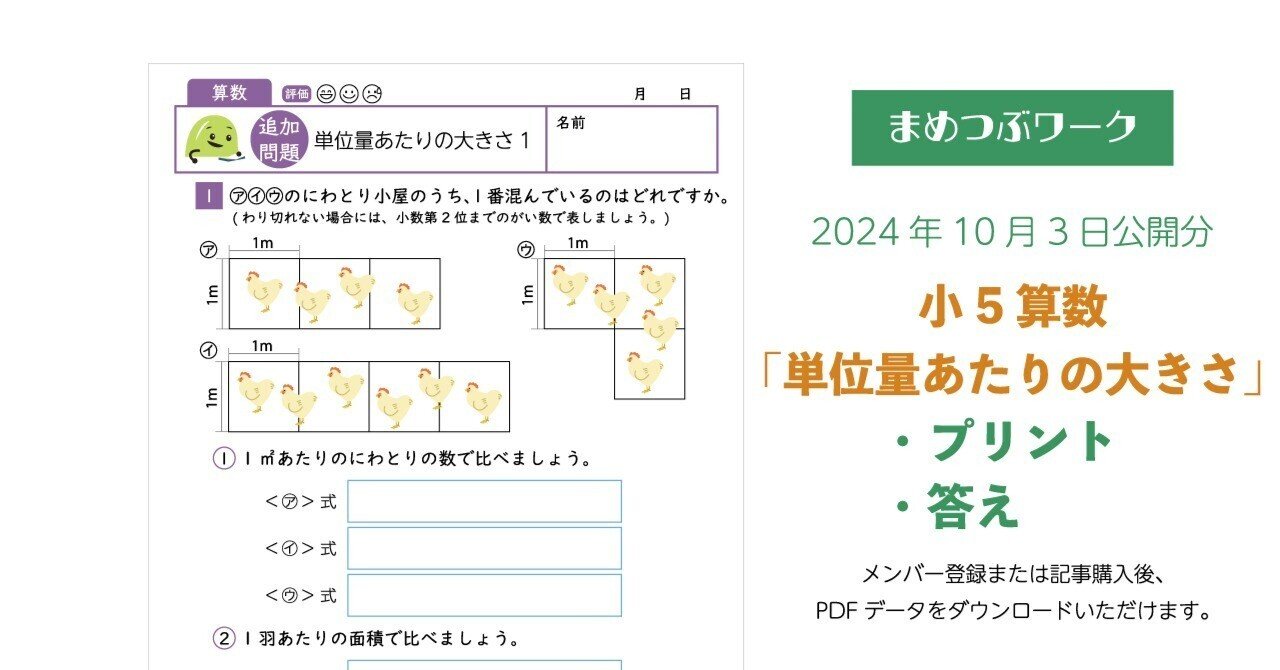 小5・算数「単位量あたりの大きさ」のプリントです。