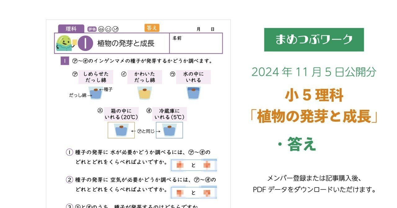 - 植物の種子の発芽と、植物の成長に必要なもの