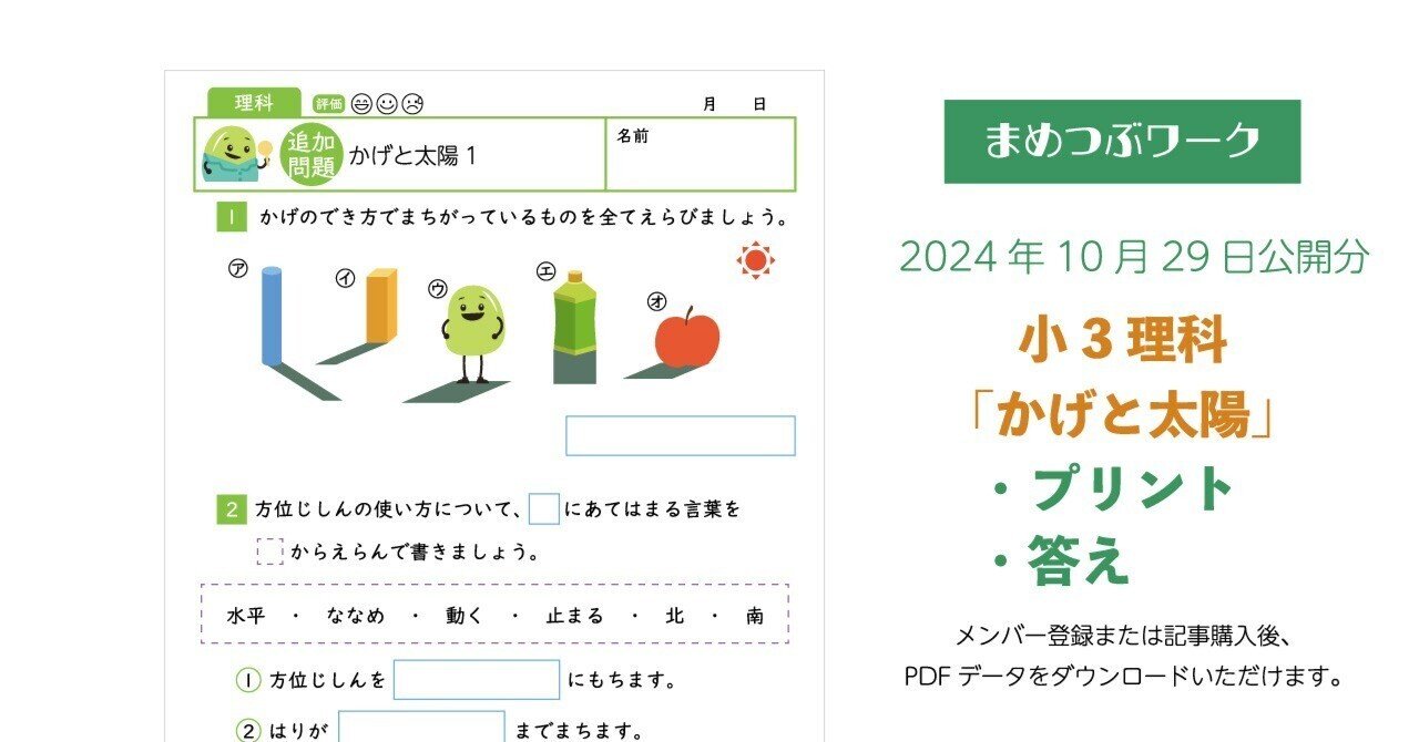 小3理科「かげと太陽」のプリントです。